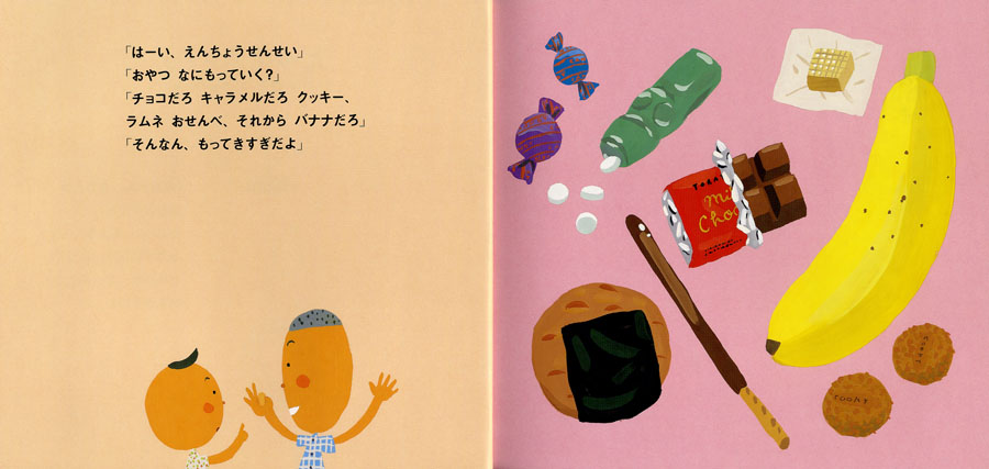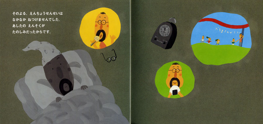 今日は待ちに待った遠足。思いきり遊んで、さあお弁当。そこへねぼうした園長先生がやってきた。